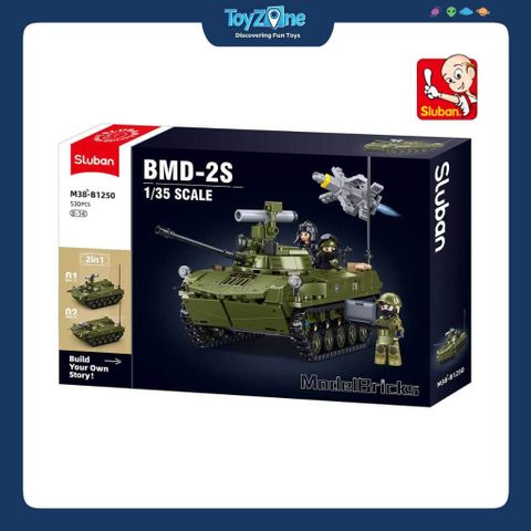 Bộ Đồ Chơi Lắp Ráp Xe Chiến Đấu BMD-2S 2in1 tỉ lệ 1:35 của SLUBAN là lựa chọn hoàn hảo cho những người đam mê mô hình quân sự và lịch sử xe bọc thép độc đáo. Bộ mô hình này mô phỏng chân thực chiếc BMD-2S, một loại Xe Chiến đấu Bộ binh Đổ bộ đường không hạng nhẹ, nổi tiếng của Nga, được thiết kế để có thể thả dù cùng lính dù từ máy bay.