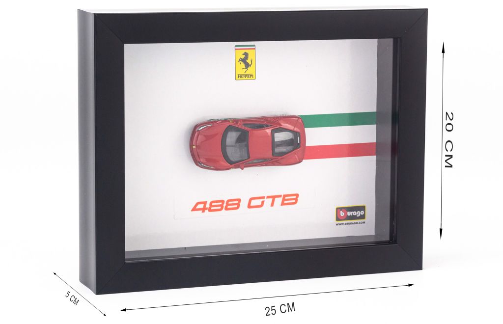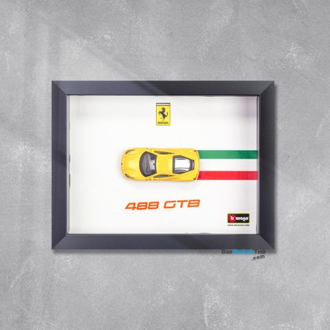 Khung Tranh Mô Hình Xe Ferrari 488 GTB 1:64 Bburago là một món đồ sưu tầm độc đáo, kết hợp giữa mô hình xe tỉ lệ 1:64 của thương hiệu Bburago và khung tranh trang trí sang trọng. Mô hình Ferrari 488 GTB được chế tác tỉ mỉ, với lớp sơn bóng bẩy, đường nét sắc sảo, mang đến vẻ đẹp mạnh mẽ và chân thực của siêu xe Ý. Khung tranh giúp tôn lên giá trị của mô hình, thích hợp để trưng bày trên bàn làm việc, kệ sưu tầm hoặc làm quà tặng cho những tín đồ đam mê xe hơi.