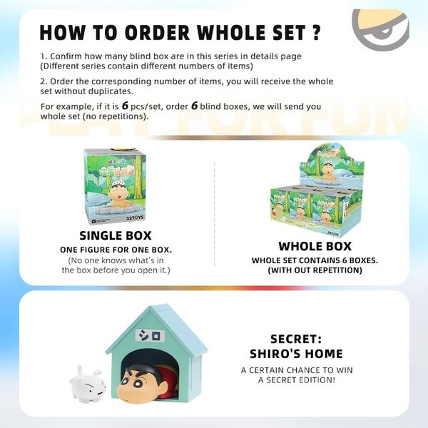 Full set (6 hộp): bên trong sẽ có đầy đủ các nhân vật của series và không bị trùng (có cơ hội trúng SECRET)