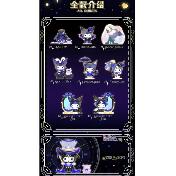 Mô hình đồ chơi Blind Box Kuromi Magic Apprentice Series Figures (Học Viên Ma Thuật) TOP TOY là bộ sưu tập độc đáo dành cho fan Sanrio với tạo hình Kuromi trong phong cách học viên phép thuật đầy kỳ bí và dễ thương. Mỗi blind box ẩn chứa một phiên bản Kuromi khác nhau với trang phục ma thuật lấp lánh, phụ kiện huyền ảo và biểu cảm đáng yêu, mang đến trải nghiệm mở hộp bất ngờ và thú vị. Sản phẩm được chế tác từ nhựa PVC cao cấp, chi tiết sắc nét, màu sắc sống động, bền đẹp, thích hợp để trưng bày, sưu tầm hoặc làm quà tặng cho những ai yêu thích Kuromi và thế giới huyền bí.