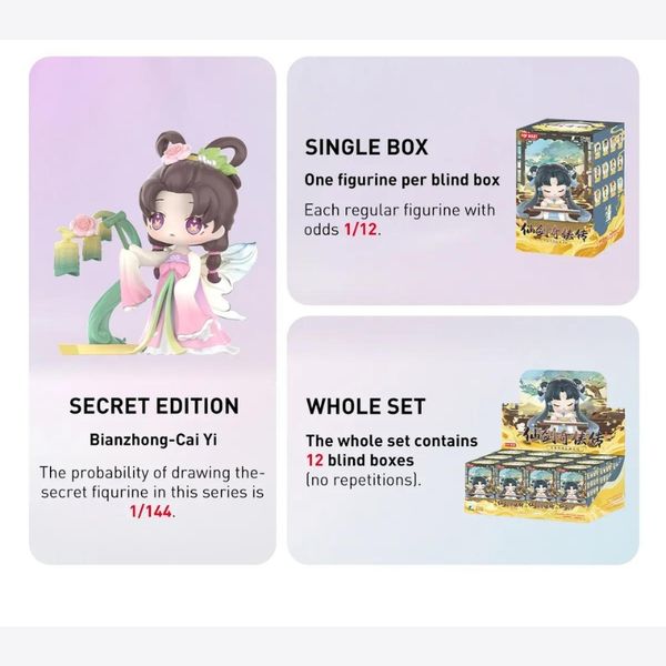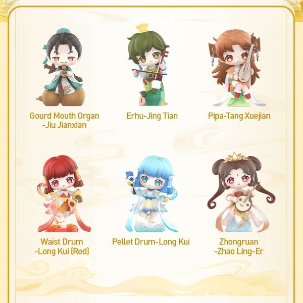 Blind Box Legend Of Sword and Fairy Chinese Traditional Musical Instrument Series của POP MART là một bộ sưu tập sản phẩm nghệ thuật đặc biệt, mang đậm bản sắc văn hóa Trung Đông và lấy cảm hứng từ trò chơi điện tử và phim ảnh nổi tiếng "Legend of Sword and Fairy" (Tiên Kiếm Kỳ Hiệp).