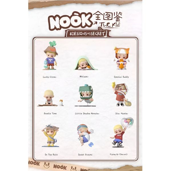 Là một nhân vật mới cuả 52TOYS với tạo hình là một cậu bé nhỏ đáng yêu, mang chút tĩnh lặng và e dè nhưng lại có một trí tưởng tượng vô cùng sặc sỡ và diệu kỳ thông qua lăng kính của Nook. Loạt hành động như hái sao, chơi đùa cùng người bạn thú cưng, tưới cây hay đơn giản là ngồi vẽ linh tinh - hành động dù trông chẳng có gì ljai được Nook phát họa lên như những mạch chuyện nhỏ được xếp lại cùng nhau.