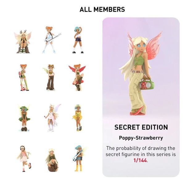 Với mỗi hộp Blind Box, người chơi sẽ trải nghiệm cảm giác bất ngờ thú vị khi mở ra một nhân vật ngẫu nhiên. Những mẫu thiết kế trong bộ sưu tập thể hiện sự giao thoa giữa cái chất nổi loạn của văn hóa punk và sự mộng mơ của thần tiên, phù hợp với những người yêu thích sáng tạo và sưu tập.