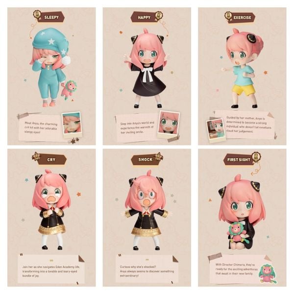 Mô hình đồ chơi Blind Box Spy × Family Anya's Daily Life (Cuộc Sống Hằng Ngày Của Anya) từ POP MART mang đến một loạt các hình ảnh đáng yêu và hài hước về cuộc sống thường nhật của nhân vật Anya Forger trong bộ truyện nổi tiếng Spy × Family. Sản phẩm này tái hiện các khoảnh khắc gần gũi và chân thực của Anya trong các tình huống đời thường, giúp người chơi cảm nhận thêm về tính cách hồn nhiên, lém lỉnh của cô bé.