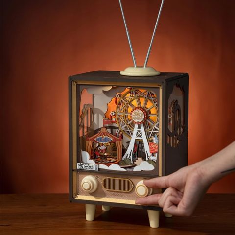 Có bao giờ bạn muốn quay lại không gian ấm áp của một đêm hội hoàng hôn, nơi có ánh đèn rực rỡ và những tiếng nhạc vui tươi? Mô hình gỗ lắp ráp 3D Retro Tivi Lễ Hội Hoàng Hôn Rolife Sunset Carnival AMT01 ROBOTIME này chính là cỗ máy thời gian thu nhỏ đưa bạn về với cảm xúc ấy. Nó không chỉ là một chiếc tivi cổ điển... mà còn là một rạp xiếc thu nhỏ sinh động, chờ đợi bạn tự tay lắp ráp và khám phá.