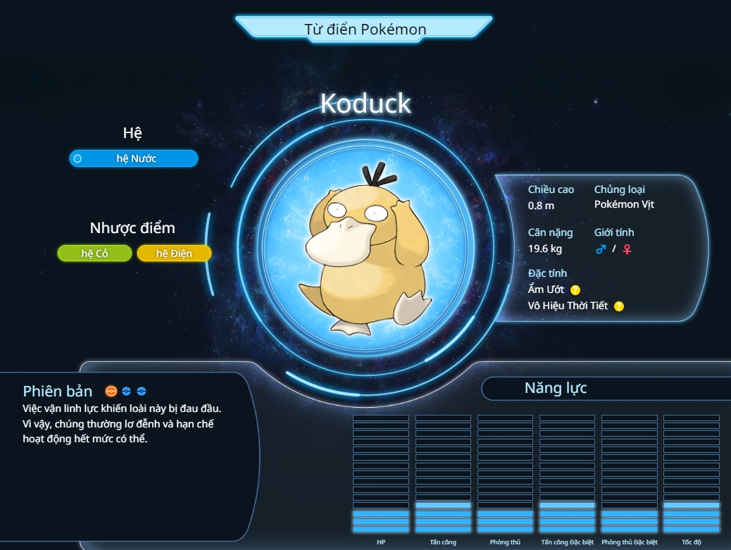 Psyduck, còn được biết đến với tên gọi Koduck trong phiên bản tiếng Nhật, là một loài Pokémon thuộc về hệ Water (Nước). Được biết đến với vẻ ngoài đáng yêu và hấp dẫn, Psyduck là một phần không thể thiếu trong thế giới Pokémon.