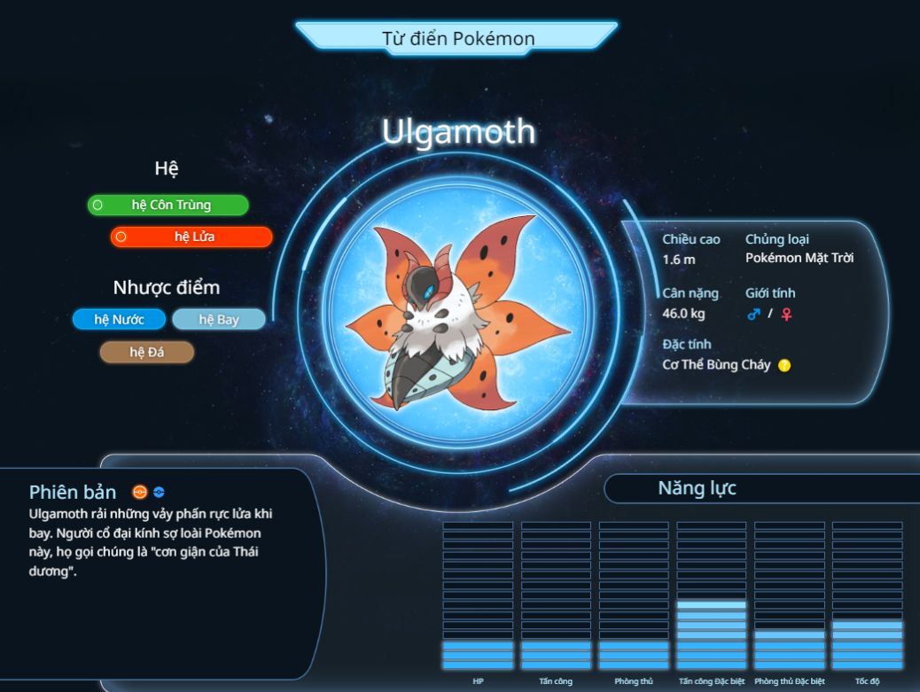 Volcarona, hay còn được gọi là Ulgamoth, là một Pokémon hệ Lửa và Côn Trùng, với sức mạnh và vẻ đẹp ấn tượng. Được coi là một trong những Pokémon huyền thoại với sức mạnh to lớn, Volcarona thường gây ấn tượng mạnh mẽ với bất kỳ ai gặp phải nó.