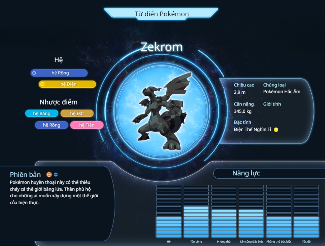 Zekrom là một trong những Pokémon huyền thoại mạnh mẽ và ấn tượng trong thế giới Pokémon. Nó thuộc về thế hệ thứ năm của loạt trò chơi Pokémon, được giới thiệu trong phiên bản Pokémon Black và White.