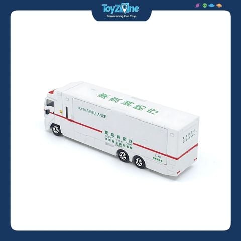 Xe sở hữu gam màu trắng chủ đạo, điểm nhấn là các họa tiết sọc đỏ cùng dòng chữ “SUPER AMBULANCE” và logo Tokyo Fire Dept, mang lại cảm giác chân thực như nguyên bản. Thùng container được mô phỏng tỉ mỉ, kết hợp phần đầu xe Isuzu Giga mạnh mẽ, tạo nên một tổng thể vừa hiện đại vừa cuốn hút.