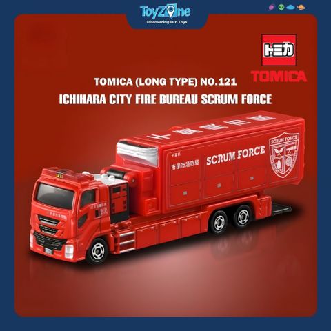 Điểm nổi bật của Long Tomica 121 Scrum Force là thiết kế dài và chi tiết, thường bao gồm các bộ phận có thể tương tác (action parts), chiếc xe luôn được trang bị hệ thống bánh xe trơn tru và các chi tiết đồ họa chính xác của cơ quan cứu hỏa Ichihara. Mô hình này không chỉ thu hút trẻ em yêu thích các phương tiện cứu hộ mà còn là một vật phẩm có giá trị đối với các nhà sưu tập muốn bổ sung các phương tiện chuyên dụng, độc đáo từ Nhật Bản vào bộ sưu tập Tomica của mình.