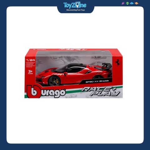 Dòng SF90 XX Stradale thuộc series hiệu năng cao lấy cảm hứng trực tiếp từ xe đua, nơi Ferrari đẩy thiết kế khí động học và sức mạnh lên một mức rất “gắt. Và với phiên bản 1:24 của BBURAGO, tinh thần đó được giữ lại khá rõ. Đây là dòng thiên về Race & Play, cân bằng giữa chơi và trưng bày, nên trẻ em có thể tương tác an toàn, còn người sưu tầm hay trang trí thì vẫn thấy form xe đẹp, sắc nét, đúng chất Ferrari.