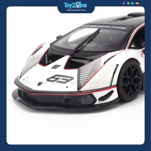 Mô hình xe Lamborghini Essenza SCV12 tỉ lệ 1:27 do Bburago sản xuất là phiên bản thu nhỏ tinh xảo của siêu xe đua hiệu suất cao đến từ Ý. Với thiết kế lấy cảm hứng từ đường đua, mẫu mô hình này gây ấn tượng mạnh nhờ những đường nét khí động học táo bạo, cánh gió lớn phía sau, khe gió trên mui và lớp sơn tĩnh điện bóng đẹp, phản chiếu đúng tinh thần của một hypercar đích thực. Tỉ lệ 1:27 giúp mô hình có kích thước vừa tay nhưng vẫn giữ được độ chi tiết và tỉ lệ chuẩn với xe thật, phù hợp để trưng bày trong không gian nhỏ hoặc làm quà tặng sang trọng cho người yêu xe.