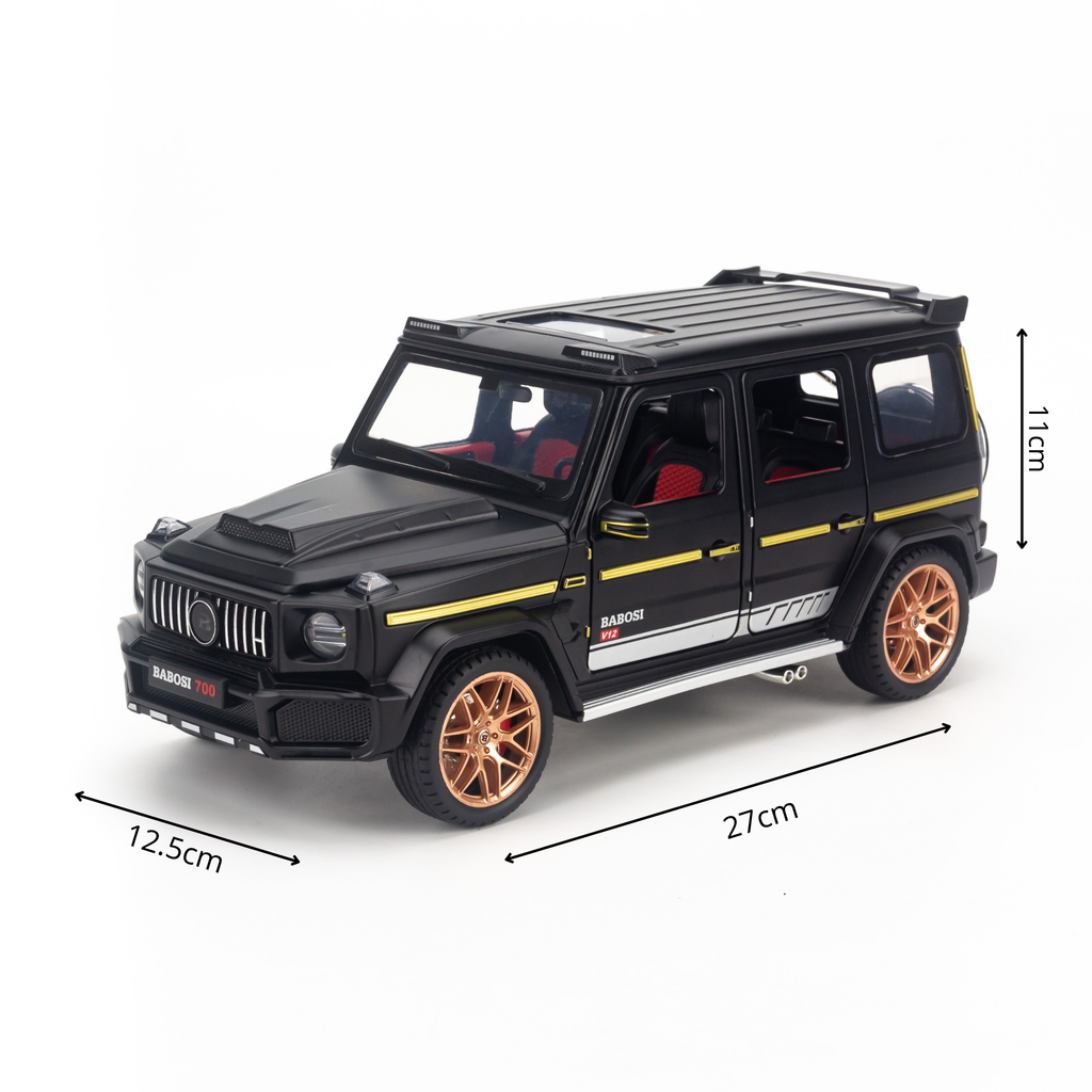 Sản phẩm được chế tác tỉ mỉ, từ các chi tiết nhỏ như lưới tản nhiệt đặc trưng, cụm đèn LED sắc nét, cho đến phần cản trước và sau được tùy chỉnh mang phong cách Brabus. Nội thất bên trong cũng được chăm chút tinh tế, với những đường may tỉ mỉ và các chi tiết mô phỏng đầy đủ, giúp người sở hữu có thể cảm nhận trọn vẹn vẻ đẹp của mẫu xe Mercedes Brabus 700 ngay trên bàn trưng bày.