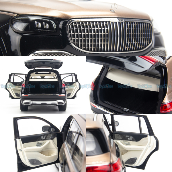 Mô hình xe Mercedes Maybach GLS600 4Matic 2021 là một sản phẩm thu nhỏ của chiếc SUV siêu sang trọng của hãng xe Đức. Mô hình xe có tỷ lệ 1:18 so với xe thật, được làm bằng kim loại và nhựa cao cấp, có thể mở được cửa, nắp capo và khoang hành lý. Mô hình xe cũng tái hiện được nhiều chi tiết nội thất và ngoại thất của xe thật, như ghế da, vô lăng, đồng hồ, đèn LED, lưới tản nhiệt, logo Maybach,...