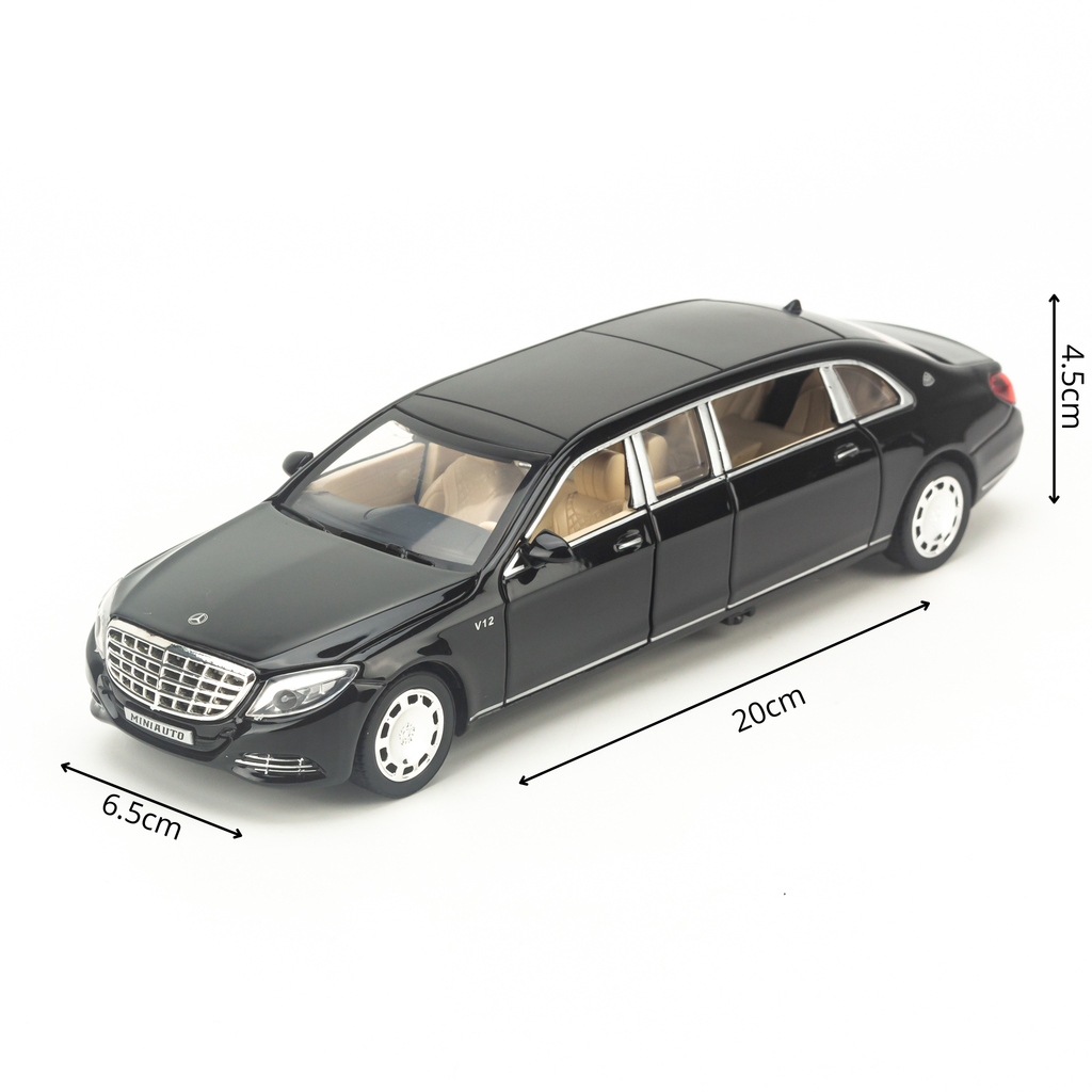 Mô hình xe ô tô Mercedes Maybach S600 Pullman tỷ lệ 1:32 của Miniauto là một tác phẩm nghệ thuật tinh xảo, mang đến cho người sưu tầm cảm giác chân thực và xa hoa của một chiếc xe hạng sang. Được chế tác tỉ mỉ từ chất liệu hợp kim cao cấp, mô hình này tái hiện hoàn hảo mọi chi tiết của chiếc xe nguyên bản từ hình dáng bên ngoài cho đến nội thất sang trọng bên trong.