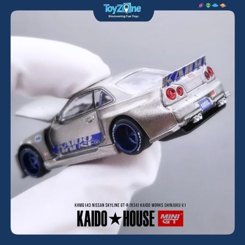 Phần thân xe được hoàn thiện với lớp sơn sắc nét, đi kèm tem đấu KAIDO. Hệ thống đèn pha, đèn hậu sắc nét cùng bộ mâm deep dish kết hợp lốp mỏng tạo và độ widebody tạo nên vẻ ngoài ấn tượng. Dù nhỏ gọn, nội thất vẫn được mô phỏng tỉ mỉ với bảng điều khiển, ghế thể thao và vô lăng đặc trưng GT-R.