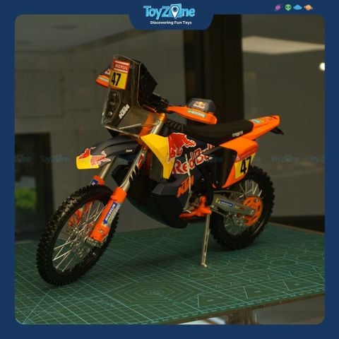 Bạn đã từng nghĩ một chiếc mô tô chinh phục sa mạc Dakar khắc nghiệt sẽ trông ra sao khi được thu nhỏ lại chưa? Mô hình xe Red Bull KTM 450 Rally Dakar 2024 1:6 MAISTO mang theo cảm giác đó… bụi bặm, mạnh mẽ và đầy tinh thần phiêu lưu. Nhìn vào là liên tưởng ngay đến những chặng đua dài vô tận, nơi con người và cỗ máy phải vượt qua giới hạn của chính mình.