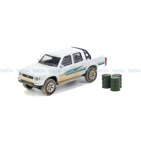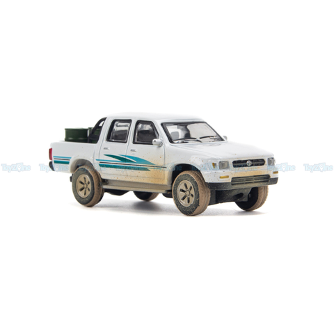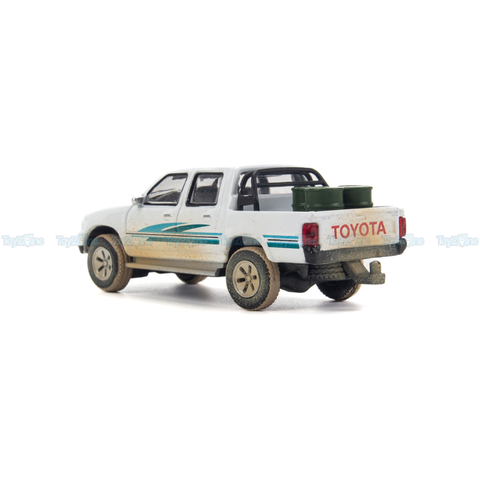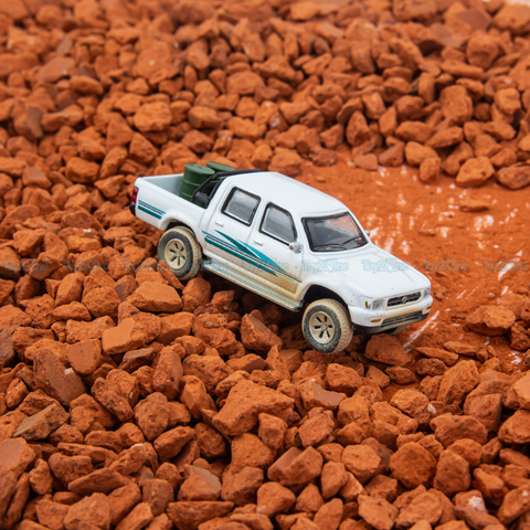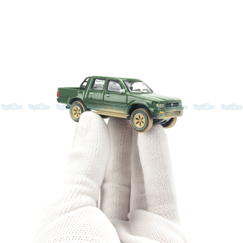 Bề mặt ngoại thất của mô hình được chăm chút đến từng đường nét, với các đặc điểm nổi bật như lưới tản nhiệt, đèn pha, và các chi tiết khác được tái tạo một cách tỉ mỉ. Mô hình này tái hiện lại sự thô mộc và chắc chắn của phiên bản off-road của dòng xe Hilux từ những năm 1990.