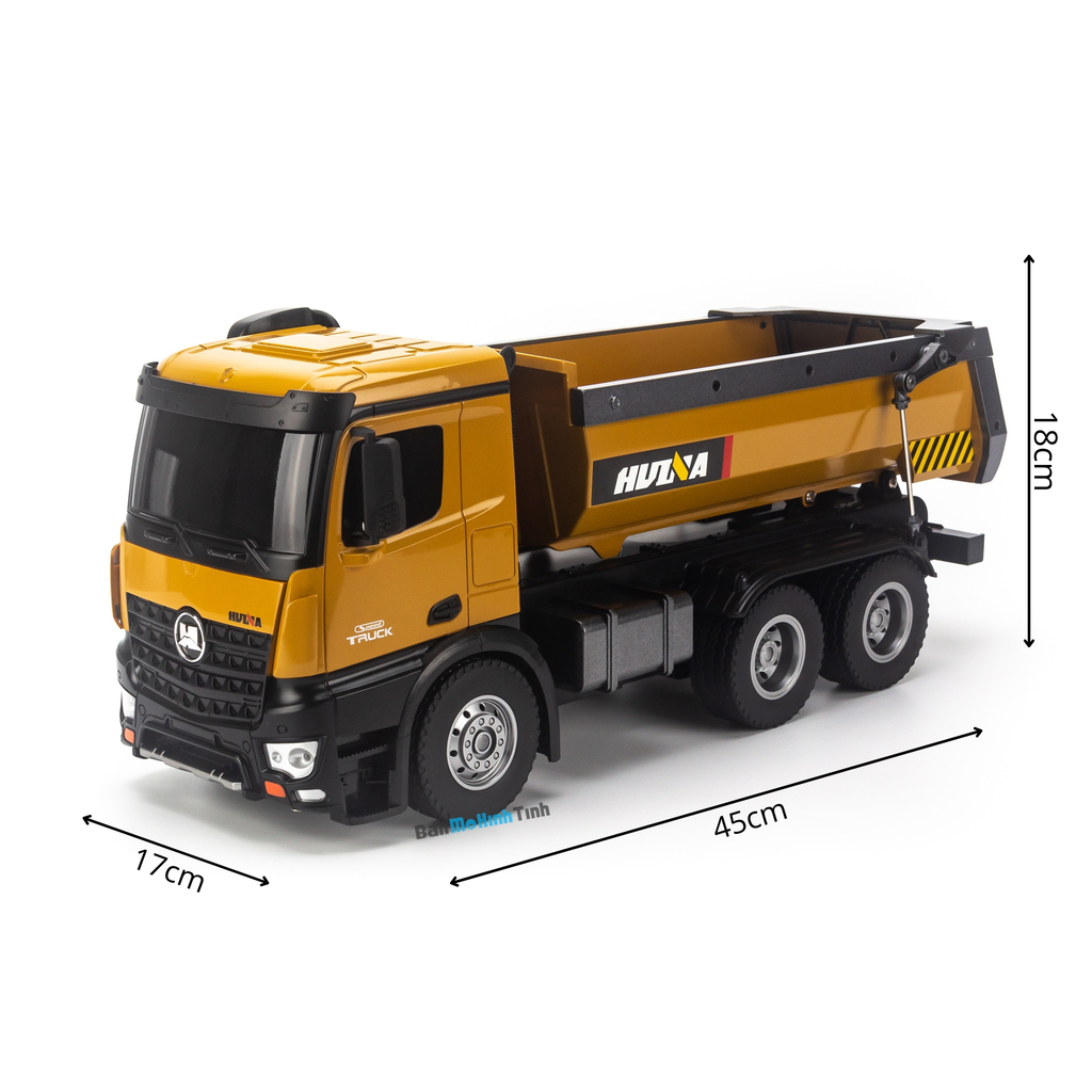 Thiết kế và Chi tiết: Xe tải HUINA 573 được thiết kế với chi tiết rất chân thực, giống như các xe tải xây dựng thực tế. Tất cả các thành phần như cabin, thùng chở và cả các chi tiết nhỏ như cửa sổ và đèn đều được mô phỏng độ chính xác cao.